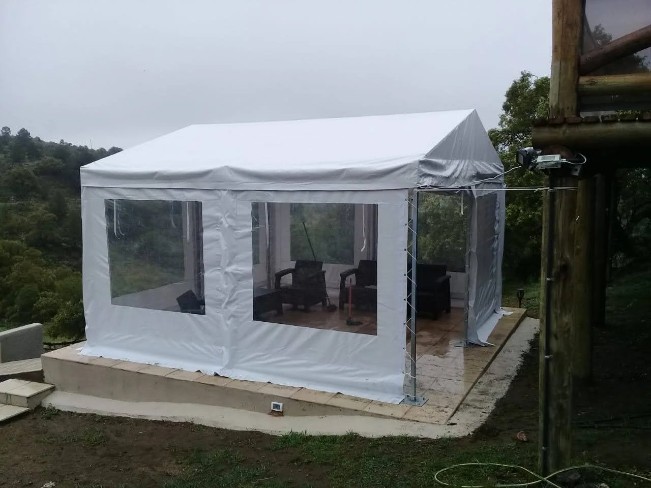 Tipo de carpa: Carpa con estructura de caños de acero y lona confeccionada a medida.